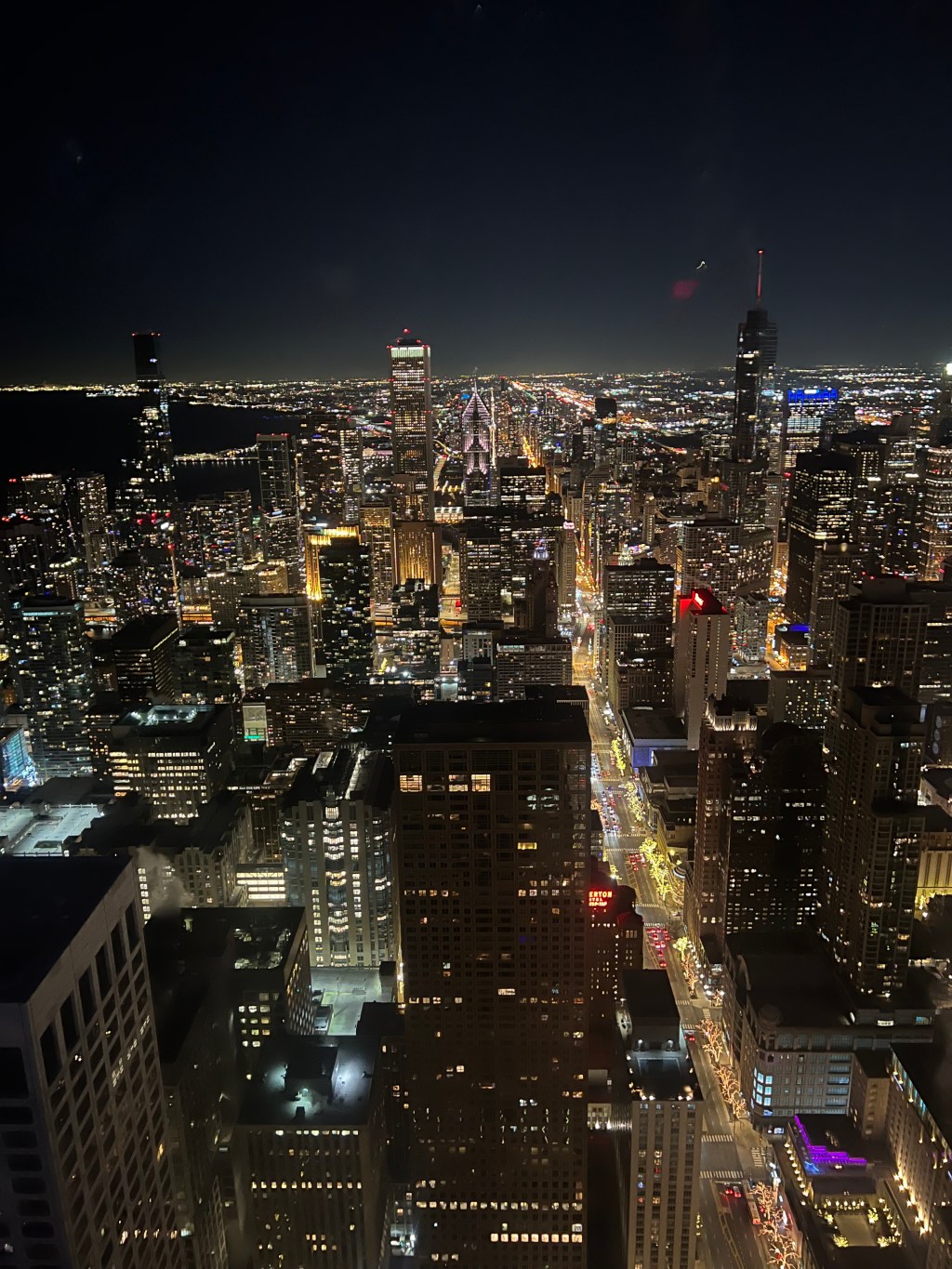 No matter what you go to the 94th floor for, tickets/reservations are required. We purchased a package that gave us general admission to the floor and two cocktails included. It’s not a cheap place to visit, but it’s 100% worth it for the view alone. The elevators that take you up to the 94th floor are incredibly fast and it’s so high up that you can feel the pressure from elevation change as you go up. Once we arrived, we got our cocktails and sat right beside the window, taking in the beautiful city views and enjoying our last bit of time in Chicago.