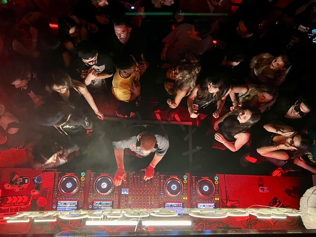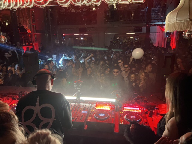 On New Year’s Eve, House Calls was held at a special venue in Ravenswood. We passed through security and went into the venue. We had paid for VIP tickets so we could have special access to a VIP bar and get stage access behind the DJ. We thought we were early, but the opening DJ had already started her set. The music volume is perfect. You can still talk to each other and hang out without having to scream into each other’s ear.