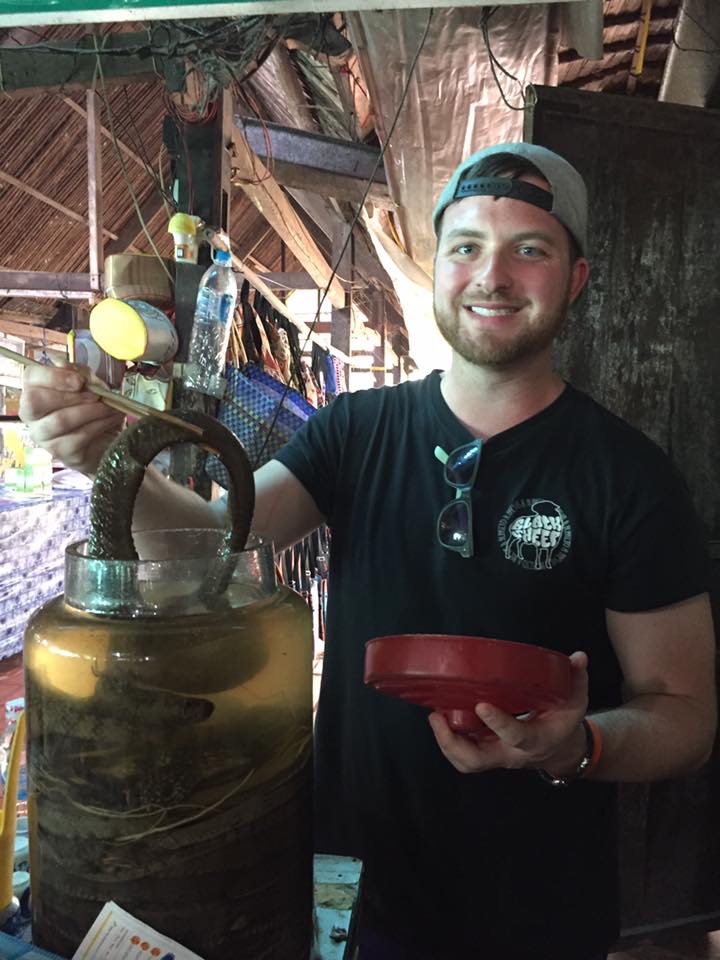 We fed alligators with red meat on bamboo fishing poles and ate alligator meat. We rode bikes along one of the islands, held bee hives with bees still on them, and ate the honey. We held python snakes and took small canoes through the jungle. Before taking the bus back home, we ate fresh mango and dragon fruit while listening to locals play/sing traditional Vietnamese music. It was a good day.