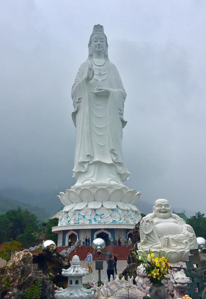 Today, we further explored Da Nang. We first visited the Linh Ung Pagoda, home of the largest statue in Vietnam, the Lady Buddha. This beautiful statue is located at the top of a mountain that faces the South China Sea. The view there is beautiful, serene, and peaceful. Afterwards we went to the Water Mountain. Millions of years ago, this mountain was underwater, just like the Appalachians. There are more than four different Buddhist temples and three caves along this mountain. We hiked nearly five hundred steps and through the caves to come out at the top of the mountain. We were greeted with another beautiful view of the ocean and the city of Da Nang.